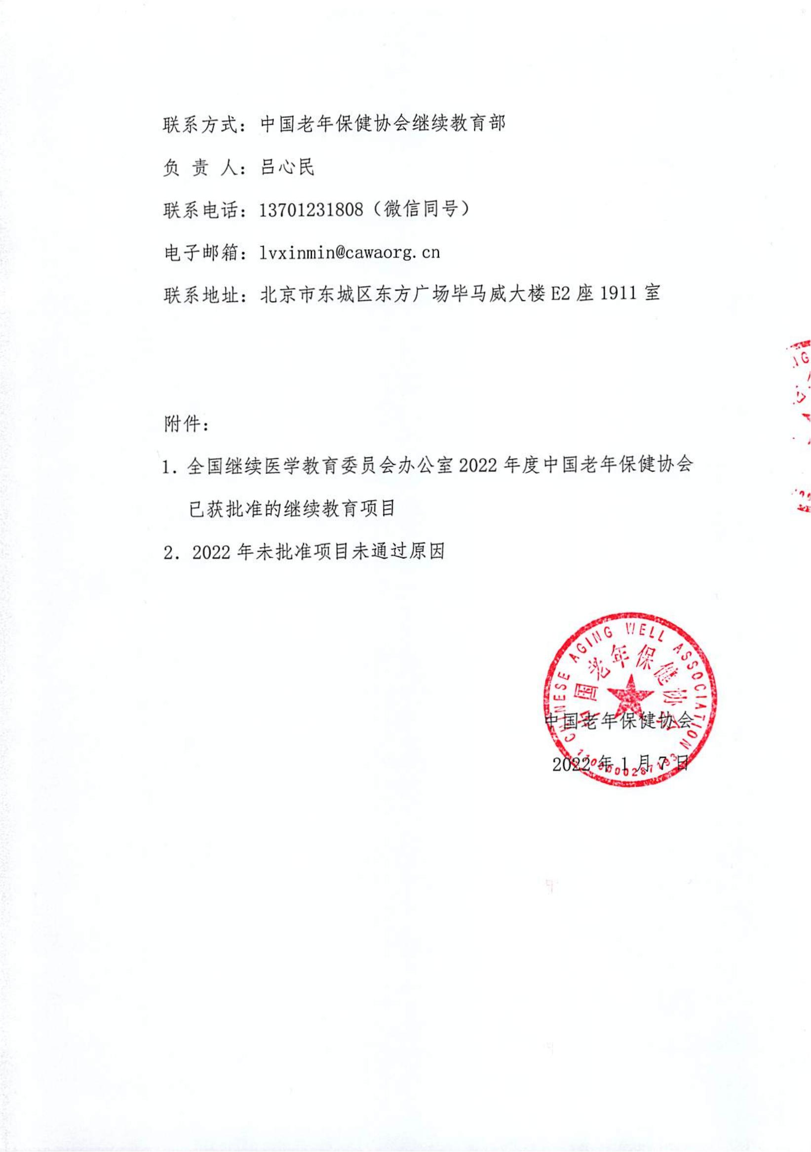 中国老年保健协会关于各分支机构已批准2022年度国家级继续医学教育项目的通知